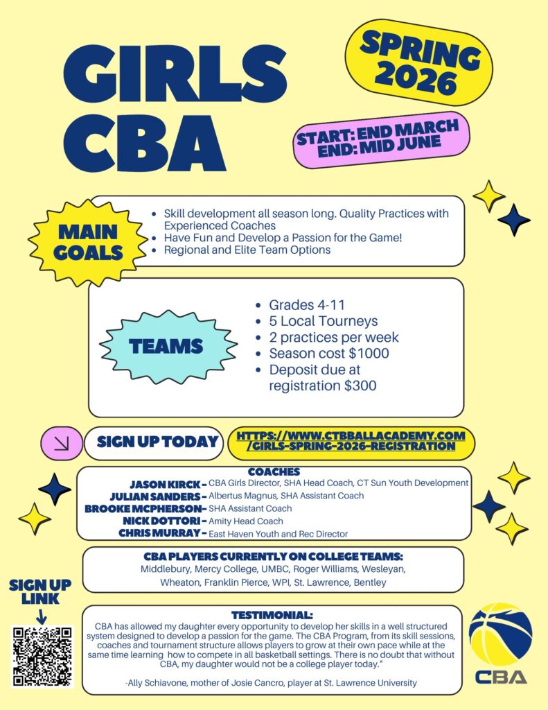 CBA has allowed my daughter every opportunity to develop her skills in a well structured system designed to develop a passion for the game. The CBA Program, from its skill sessions, coaches and tournament structure allows players to grow at their own pace while at the same time learning how to compete in all basketball settings. There is no doubt that without CBA, my daughter would not be a college player today.”